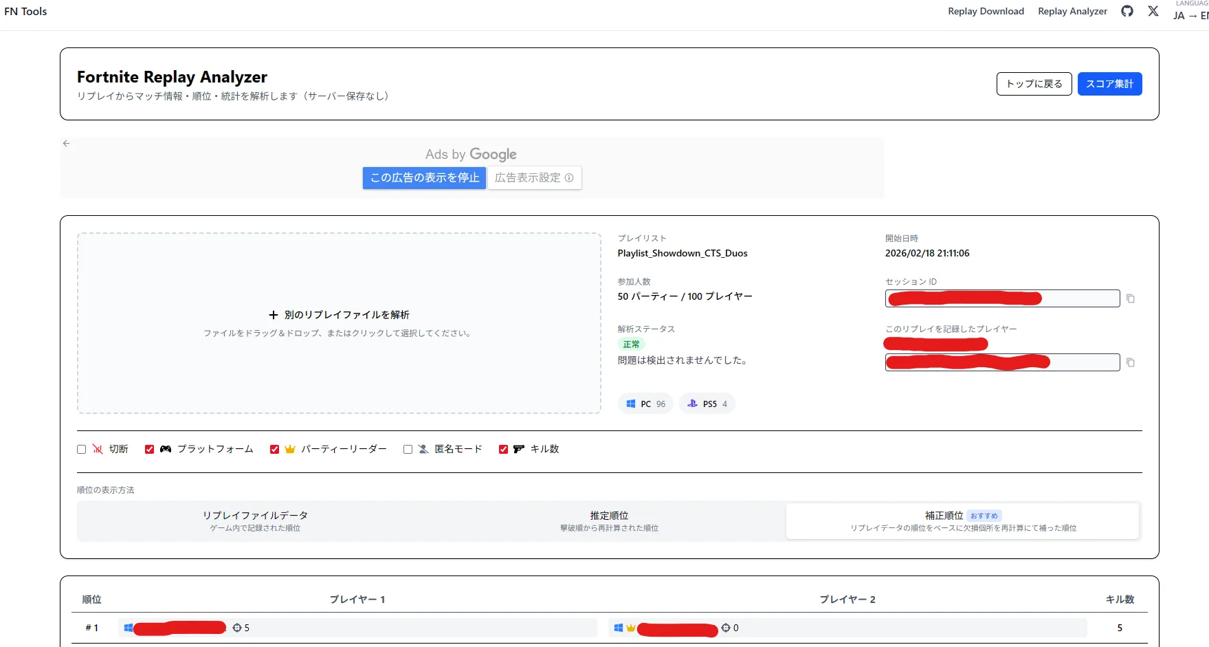 【FortniteTools】Fortnite Replay Analyzer - スコア集計方法【使い方】